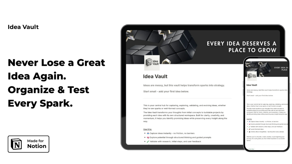 Idea Vault – Capture, Explore & Launch Better Ideas (Notion Template)